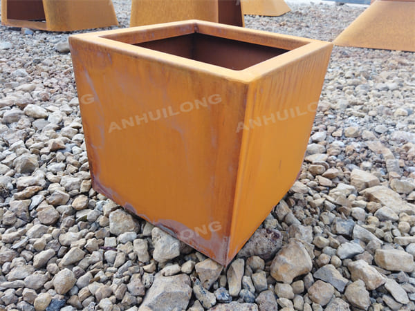 AHL Corten steel flower pots are made of corten steel,and created by highly skilled workers with advanced equipment, the workers use our bending technology to create weathering steel flower pots, and other shapes are designed by our designers. Planter panels interlock together to create a very sturdy plant container that can hold large plants. Best of all, the planter is suitable the styles of simple, modern and minimalistic. Weathering steel planters are not pre-weathered and will arrive in a bare steel finish that develops a rusted color over time.